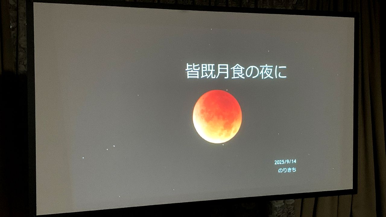 合宿の少し前にあった皆既月食の写真と動画を披露して頂きました。